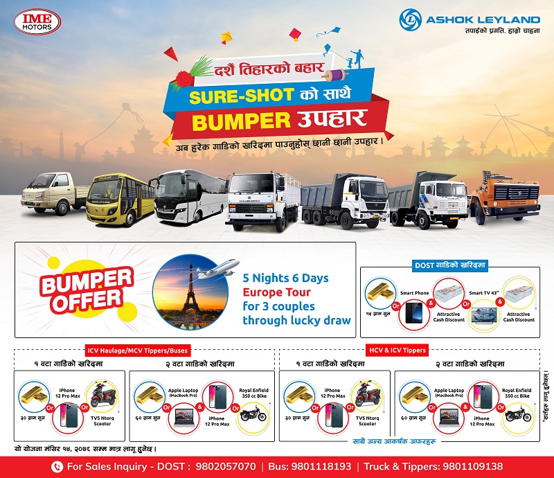 काठमाडौँ, असोज १४ गते । नेपालीहरूको महान् पर्व दसैँ, तिहार तथा छठ मनाउन घर जानका लागि दुई दिनमा २९ हजार नौ सय ५५ यात्रुले बसको अग्रिम […]